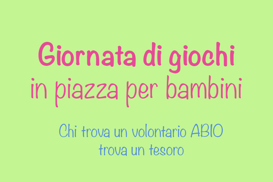 Domenica 18 settembre 2016 ABIO – Sede di L’Aquila (Associazione del Bambino In Ospedale – www.abio.org) torna anche quest’anno in piazza Duomo a L’Aquila dalle ore 10:00 alle 19:00 con la sua Giornata di Giochi in piazza per bambini “Chi trova un volontario ABIO trova un tesoro”.